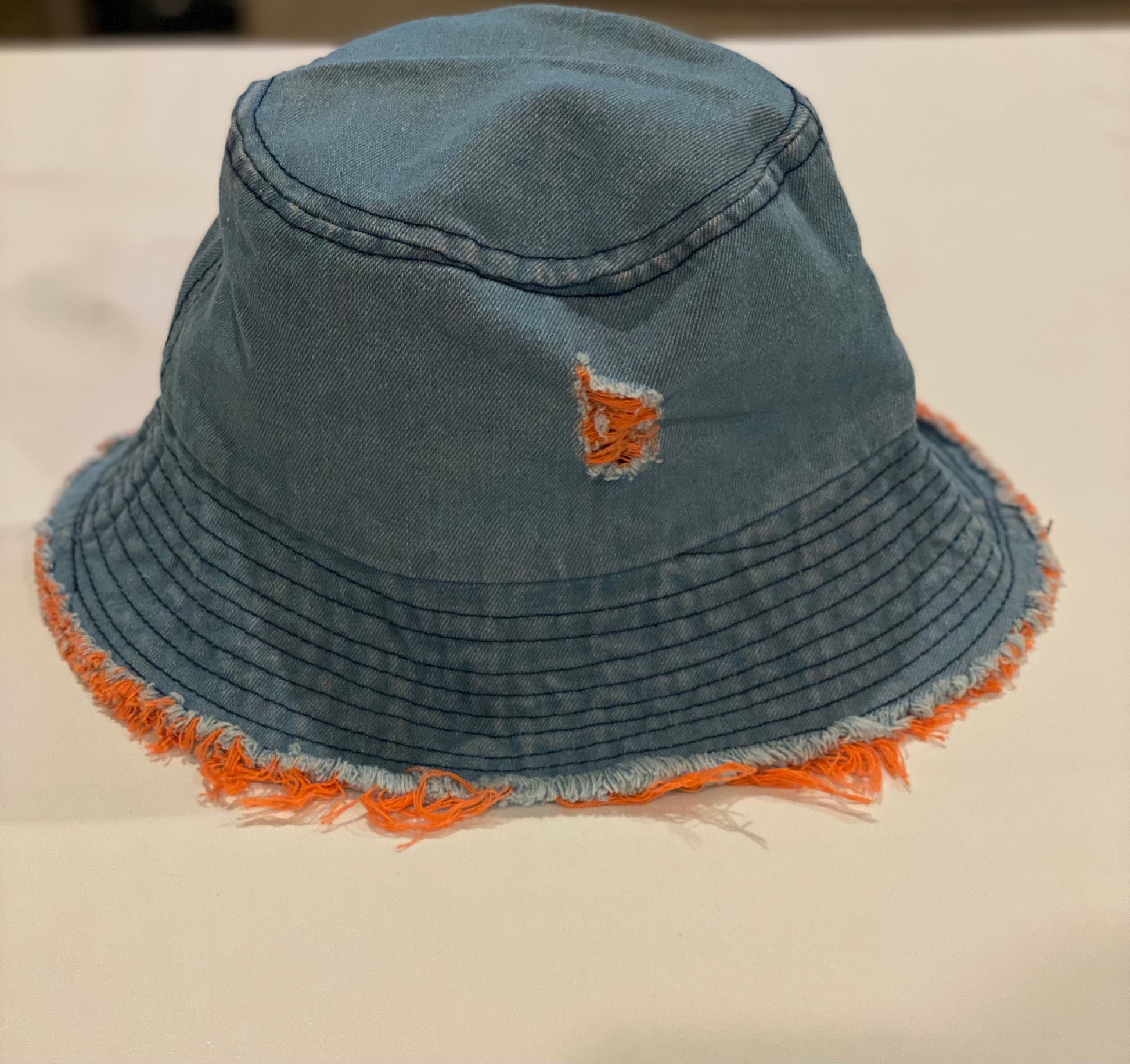 Light denim hat with orange trim